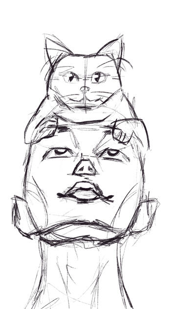 Draft - quick sketches while discussing the commission to reach mutual understanding what the end result should look like.